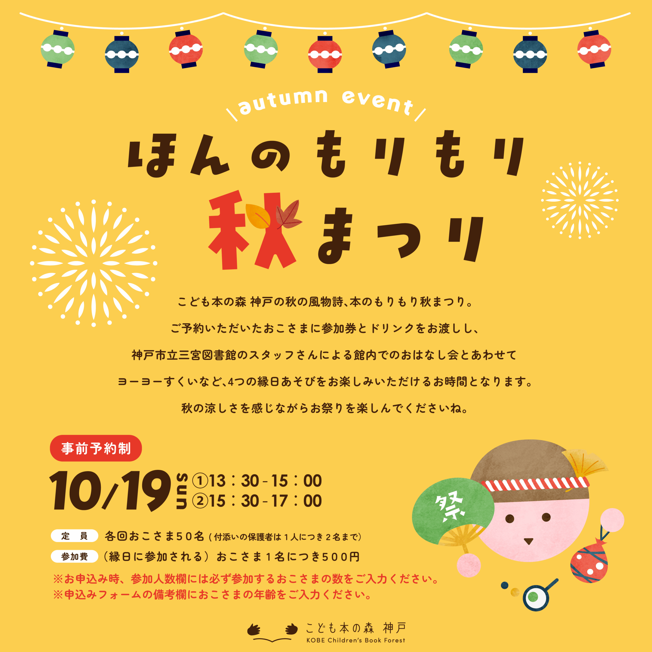 ※縁日に参加されるおこさまの人数のみでお申込みください