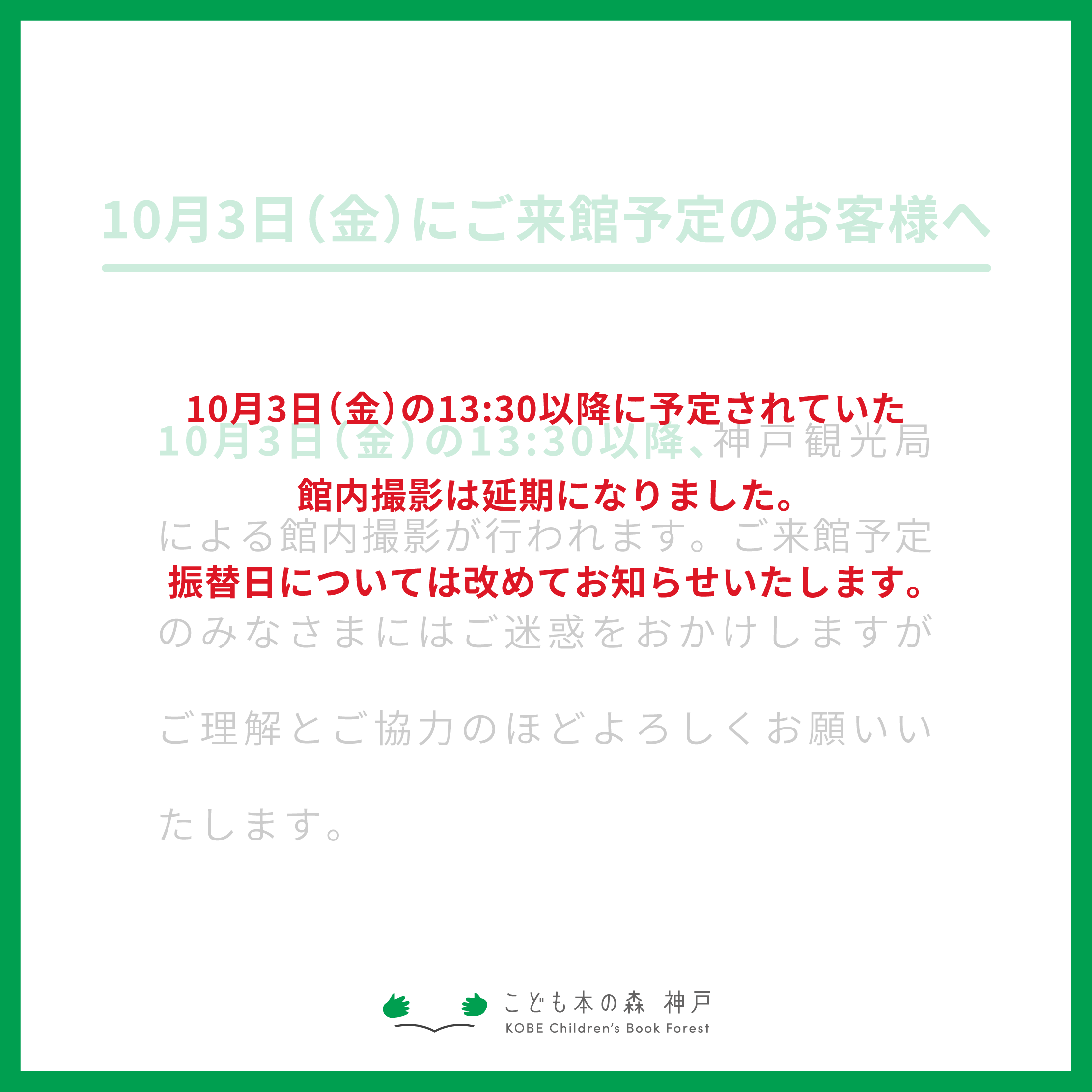 10月3日(金)の13:30以降に予定されていた館内撮影は延期になりました。
