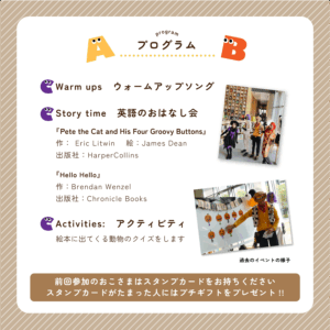 前回の『KEA English Story Time -Curious Readers-』に参加された方はスタンプカードをお持ちください