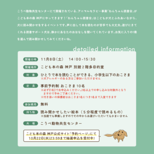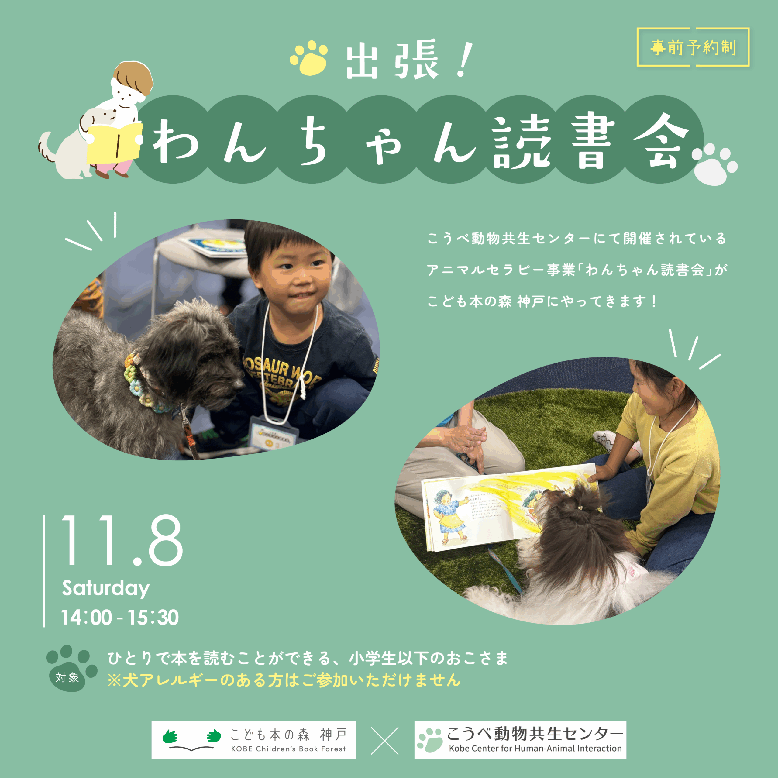 こうべ動物共生センターにて開催されている、アニマルセラピー事業「わんちゃん読書会」がこども本の森 神戸にやってきます!