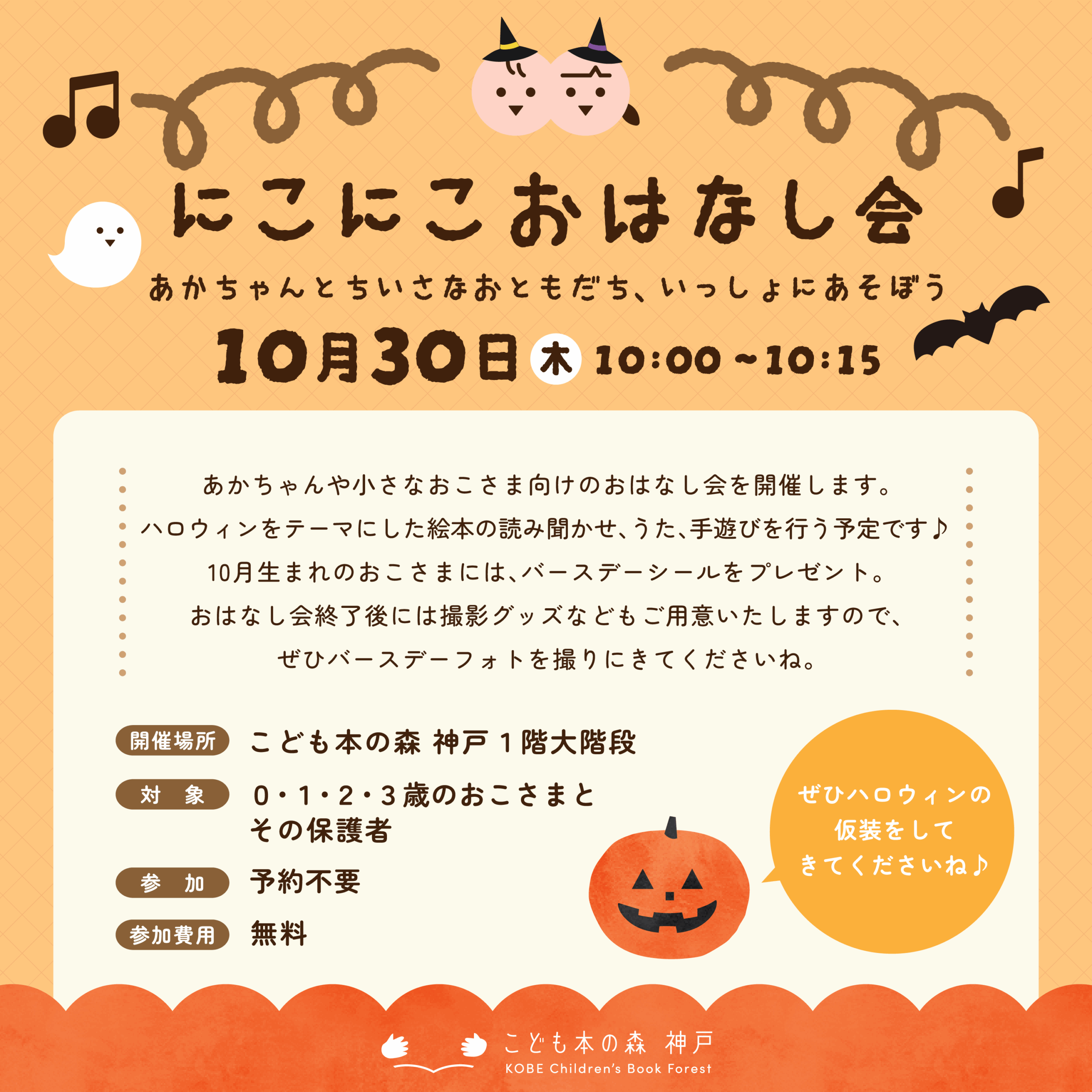ハロウィンをテーマにした絵本の読み聞かせ、うた、手遊びを行う予定です♪