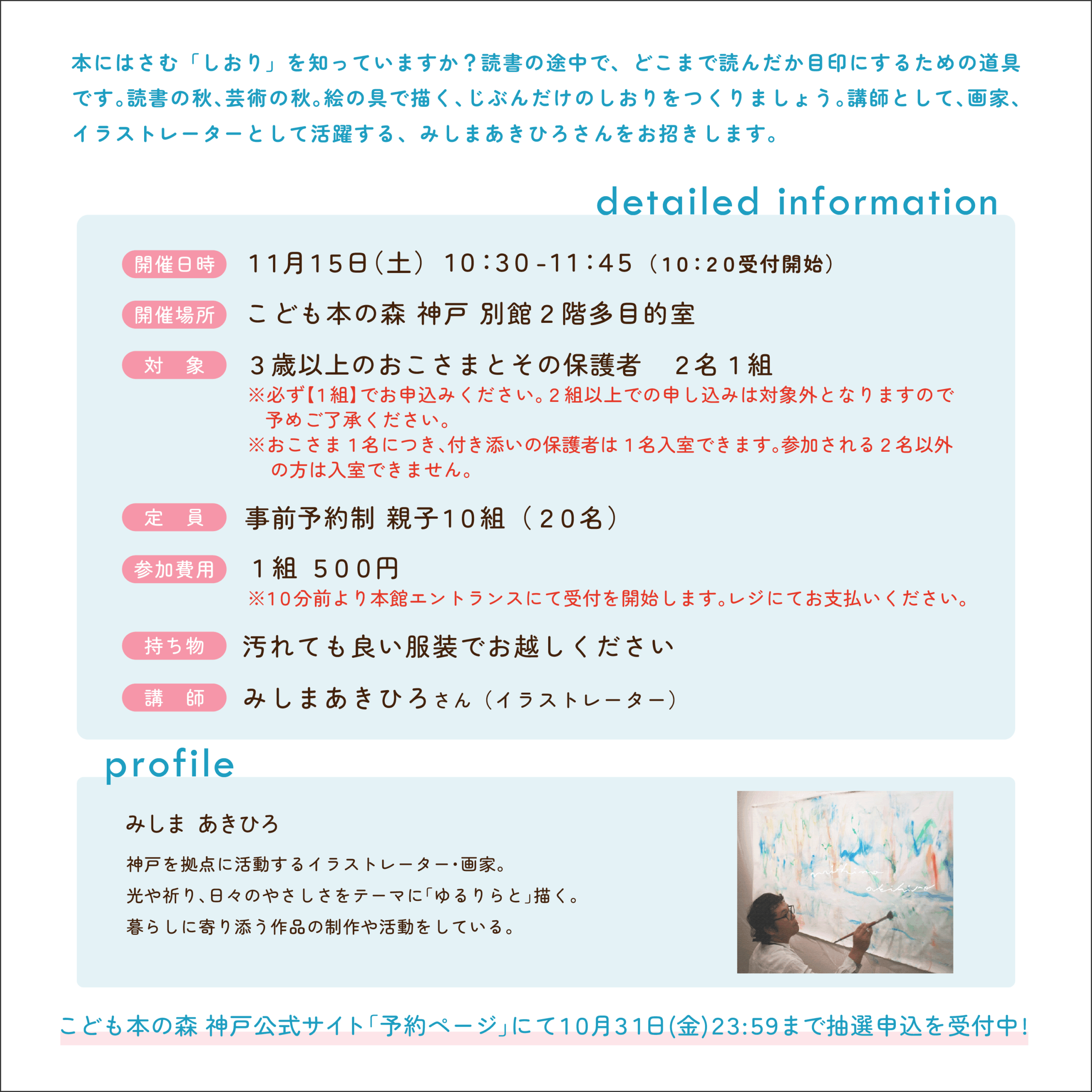 講師として、画家、イラストレーターとして活躍する、みしまあきひろさんをお招きします。