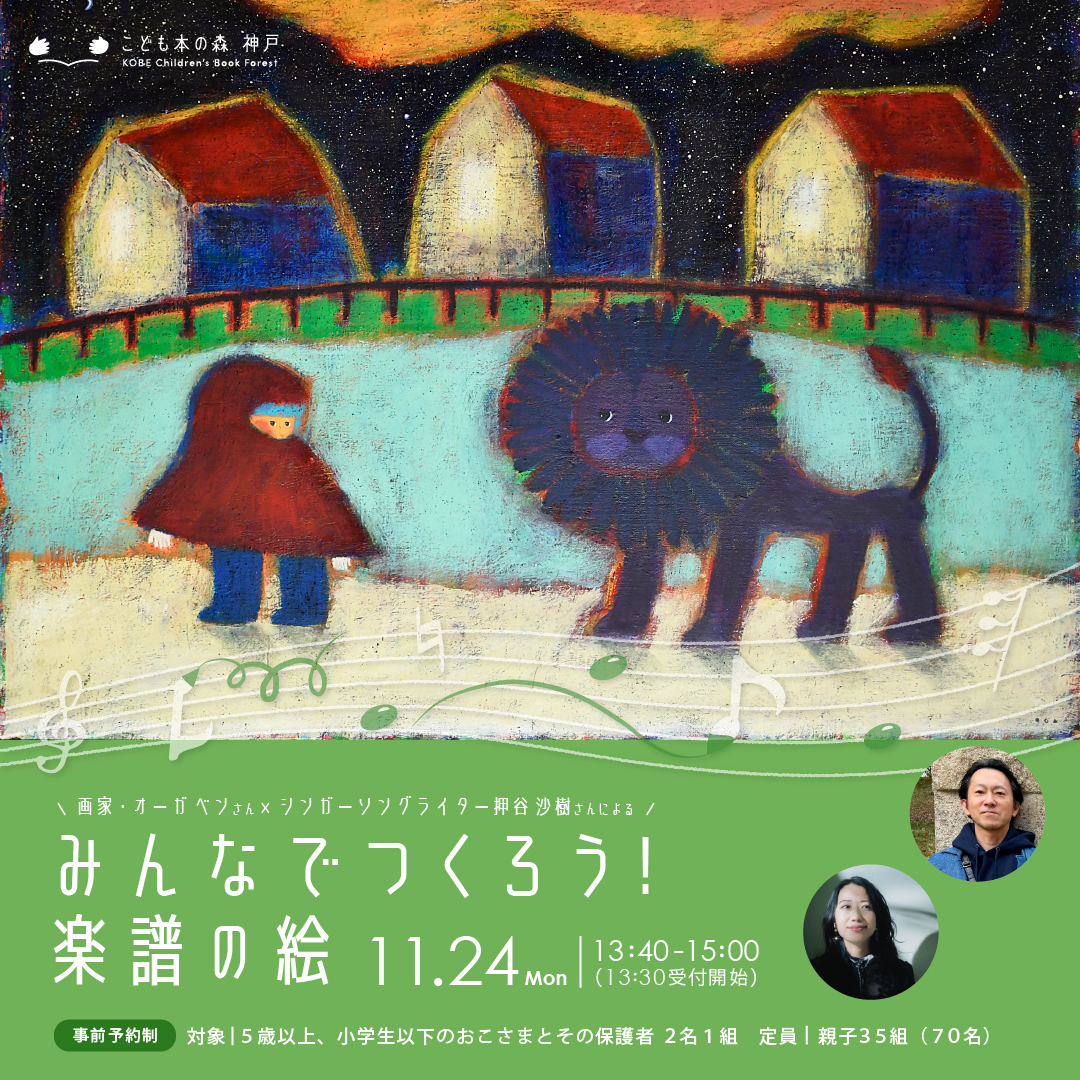 画家のオーガベンさんとシンガーソングライターの押谷沙樹さんをお招きし、想像力を使って絵画と音楽のコラボレーションを楽しむイベントを開催します。