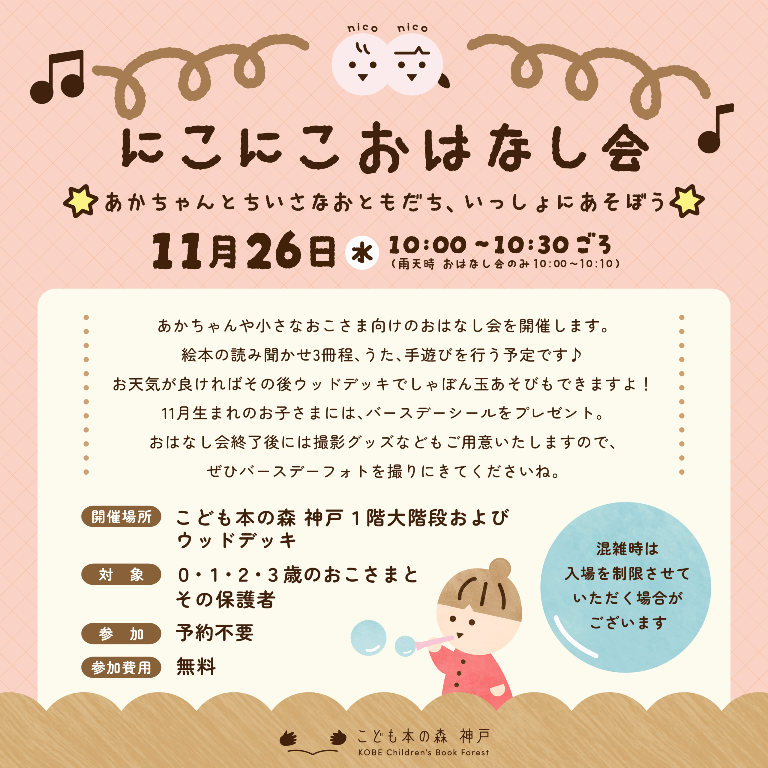 11月26日(水)10:00~10:30頃(雨天時 おはなし会のみ10:00~10:10)