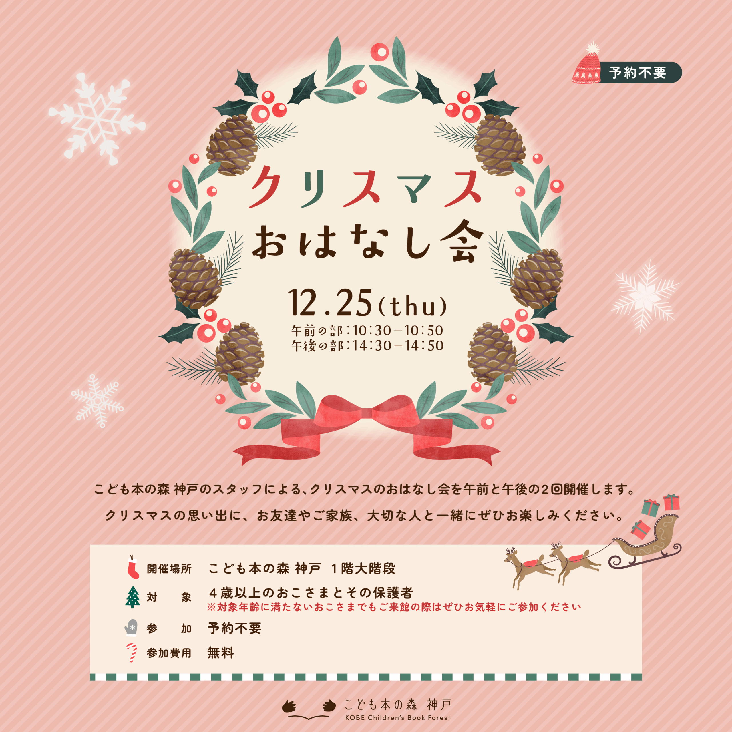 こども本の森 神戸のスタッフによる、クリスマスのおはなし会を午前と午後の2回開催します。
