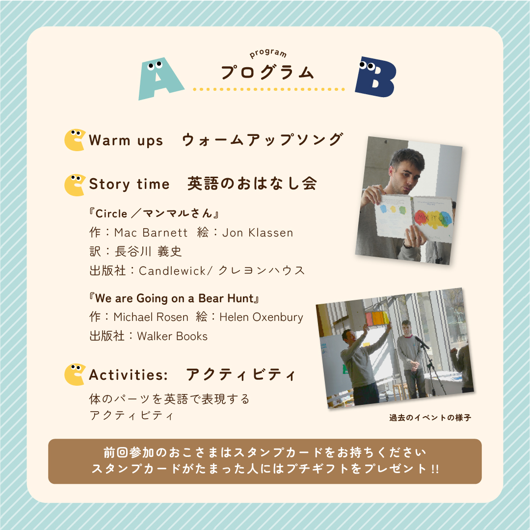 手遊びや参加型の英語をつかった簡単なアクティビティも実施予定!