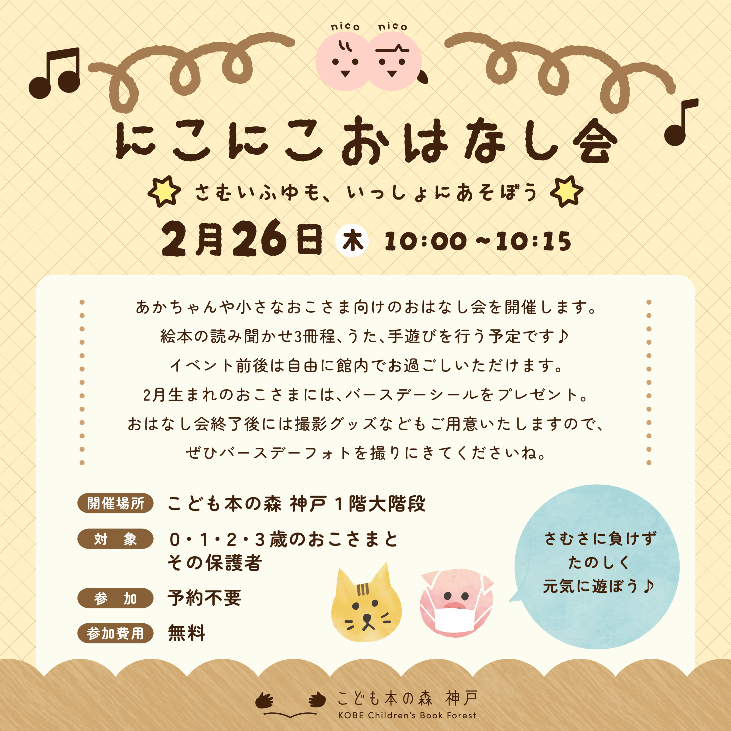 おはなし会終了後には撮影グッズなどもご用意いたしますので、ぜひバースデーフォトを撮りにきてくださいね。