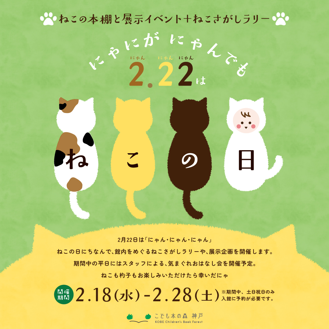 ねこの日にちなんで、館内をめぐるねこさがしラリーや、展示企画を開催します。